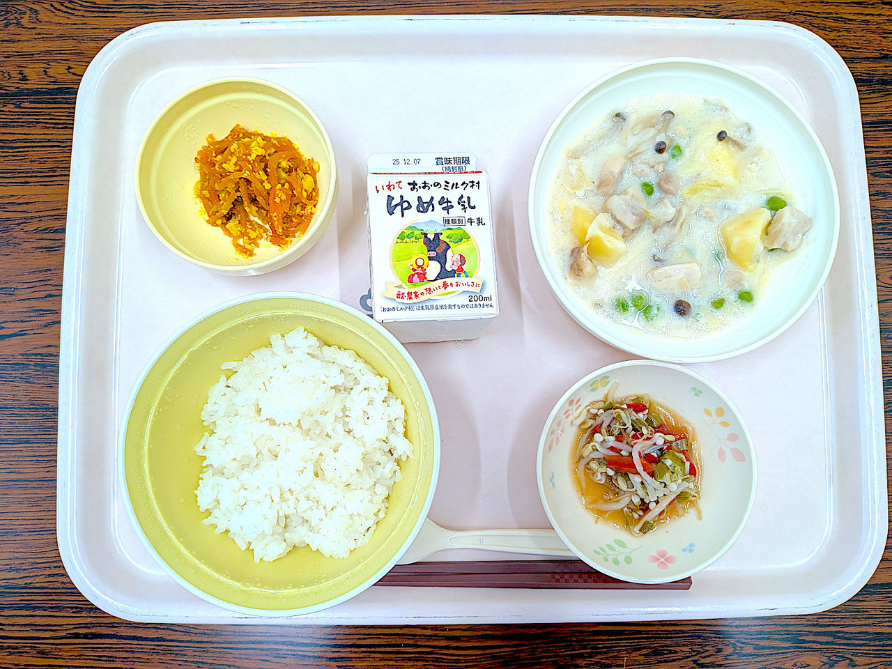チキンクリーム煮、人参しりしり、オクラのナムル